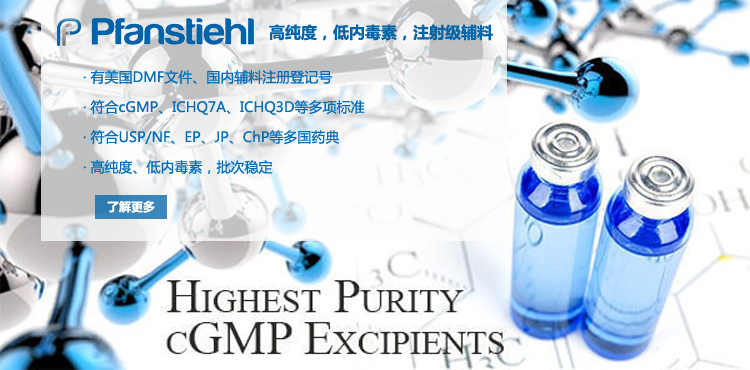 “熱烈祝賀Pfanstiehl的注射級甘氨酸Glycine(G-140)喜獲CDE登記號F20250000403, 這是Pfanstiehl產品獲得的第18個CDE登記號!”甘氨酸在醫藥輔料制劑中應用廣泛,, 可作為緩沖劑,增溶劑,穩定劑等,具有諸多優勢。Pfanstiehl秉承一貫高品質理念,為滿足全球生物制藥行業對于高品質甘氨酸的需求,隆重推出的注射級甘氨酸Glycine (G-140), 具有超高純度,超低內毒素,超低金屬殘留的特點,單獨檢測29種金屬離子,并且新增DNA,RNA,DNA酶,RNA酶和脂肪酶,亞硝酸鹽等多項質量指標的檢測,符合多國藥典規定(USP, EP, BP, JPE, ChP),可用于生物治療性藥物和疫苗的生產。產品信息:· 產品名稱:Glycine, High Purity, Low Endotoxin, Low Metals, USP, EP, BP, JPE, ChP (G-140)· 中文名稱:甘氨酸· 分子式:C2H5NO2· 分子量:75.07 g / mol· CAS號:56-40-6· 產品貨號:G-140產品特點: · 超高純度,超低內毒素,超低微生物含量,超低金屬雜質殘留· 質量指標新增DNA,RNA,DNA酶,RNA酶,脂肪酶和亞硝酸鹽檢測· 符合多國藥典:USP, EP, BP, JPE, ChP· 符合ICH Q3D標準· 符合GMP標準· 已獲DMF和CDE登記號 產品應用:· 緩沖劑· 穩定劑· 增溶劑如果您對Pfanstiehl注射級別Glycine G-140感興趣,歡迎聯系Pfanstiehl 中國區代理商北京西美杰科技有限公司獲得如下詳細的產品概況說明文件和測試樣品。Pfanstiehl Inc.最新產品系列如下,歡迎聯系北京西美杰科技有限公司獲取100g裝免費樣品。北京西美杰科技有限公司為Pfanstiehl中國代理,為客戶提供完善的技術支持與售后服務。歡迎撥打西美杰客服電話400-050-4006或者登陸網站www_xmjsci_com.dds69.com了解更多信息。 更多>
